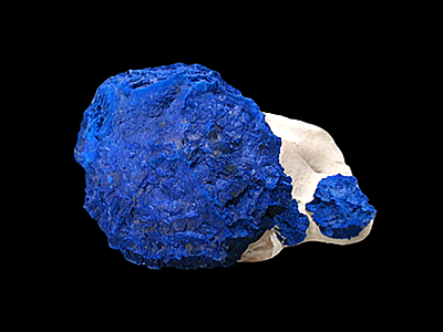 Copper Mine, Areyonga, Gardiner Range 9.4 x 7 x 4.4 cm An outstanding example of an Azurite “sun” from the Malbunka Copper Mine. The Azurite on this specimen has a beautiful and rich blue color as well as an interesting texture with good (as far as Azurite from this location is concerned) crystallization. The largest Azurite on this specimen measures 7 x 7 cm and is unusually thick. At 2.1 cm it is one of the thickest Azurite nodules that I have seen from this location. 4 or 5 mm in thickness is what you usually get. These Azurite “suns” form in a fashion that is unlike any other Azurite that I've seen. These flattened discs of Azurite are formed between layers of Kaolinite which forces them to grow in a laterally compressed, radiating manner. A top quality example of this material.