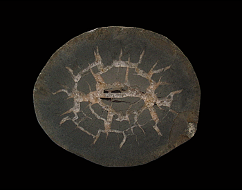 AD-202 Barite nodule $45 Col de Pré Guittard, Arnayon, Drôme, Auvergne-Rhône-Alpes, France 8.5 x 7.1 x 2.5 cm A Septarian nodule with a core of subhedral crystals of Barite. The Barite has a mild fluorescence. Septarian nodules contain angular cavities or cracks, called “septaria”. This word comes from the Latin word septum, meaning partition.