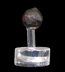 G-172 Almandine $50 Valle de Trinidad, Ensenada Municipality, Baja California, Mexico 1.6 x 1.5 x 1.5 cm A complete all-around crystal of deeply-colored, red Almandine. This specimen has slightly rounded edges most likely due to alluvial action. Specimens from this remote pegmatite are extremely rare and almost never seen for sale.