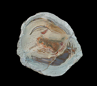 Valley, Oppenau, Oberes Renchtal, Ortenaukreis 9.3 x 7.4 x 3.5 cm A lithophysae agate from Germany's Black Forest. This specimen features concentric bands of agate as well as areas of hematite-included agate.