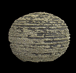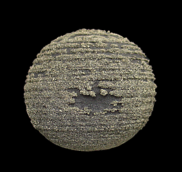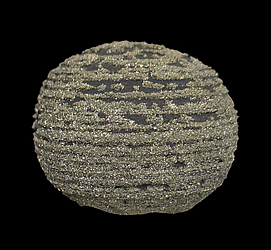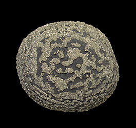AD-285 Pyrite $100 Dongchuan Cu Ore Field, Dongchuan District, Kunming, Yunnan, China 5.8 x 5 x 4.7 cm This specimen features numerous pyrite crystals that have formed in concentric rings on a spherical nodule of shale. These distinctive & quite singular specimens were found for a short time in the late 2000's.