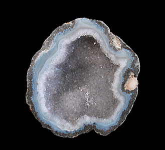 AD-263 Agate $50 Börtewitz, Mittelsachsen, Saxony, Germany 5.4 x 4.9 x 1.4 cm An agate lithophysae nodule (thunder egg) with bands of various shades of blue from the northern part of Mittelsachsen.