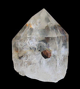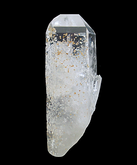Q-625 Quartz with Adularia inclusions $75 Hamilton Hill Mine, Jessieville, Garland County, Arkansas, USA 13.8 x 5 x 3.3 cm A large crystal of quartz with gem-clear termination that has been included by many small crystals of adularia. This crystal is from a small project in 2013 that yielded adularia and quartz combination specimens considered to be unique in quality and size for North America.
