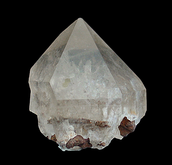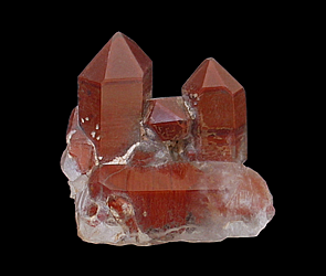 Q-630 Quartz with Hematite inclusions $45 Crystal Park area, Crystal Park, El Paso County, CO 4.1 x 3.7 x 2.9 cm A group of very clear and lustrous quartz crystals that have been included with brick-colored hematite.